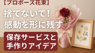 ご自身でドライフラワーや押し花にする方法もありますが、プロポーズやウェディングブーケのような特別な花は、失敗のリスクも考慮する必要があります。