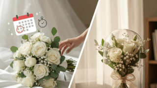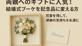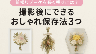 - メリット: ブーケの立体的な美しさをそのまま残せるのが最大の魅力です。ブーケのリボンや持ち手なども一緒に残せることが多いです。