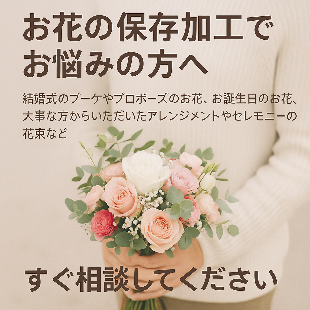 お花は繊細。乾燥や変色のリスクを避け、長く美しいまま残すにはプロの技術が不可欠です。