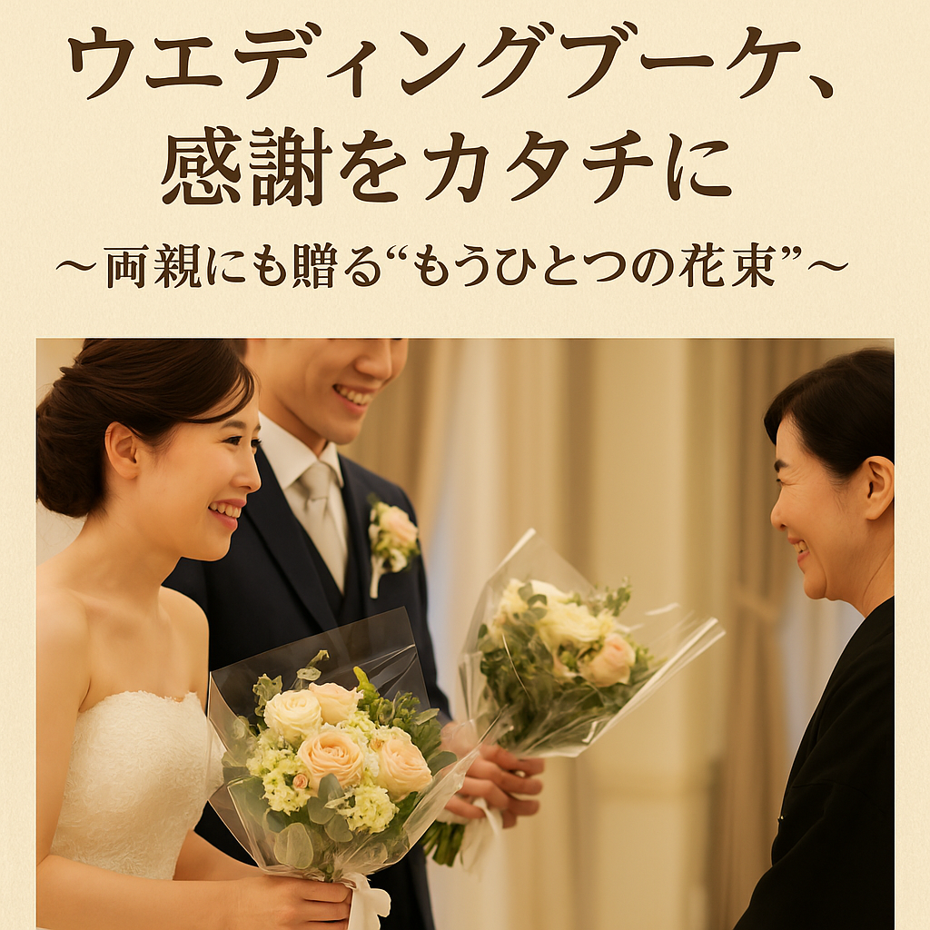 ウエディングブーケは、自分たちの記念だけでなく、両親へ感謝を伝えるギフトにもなります。