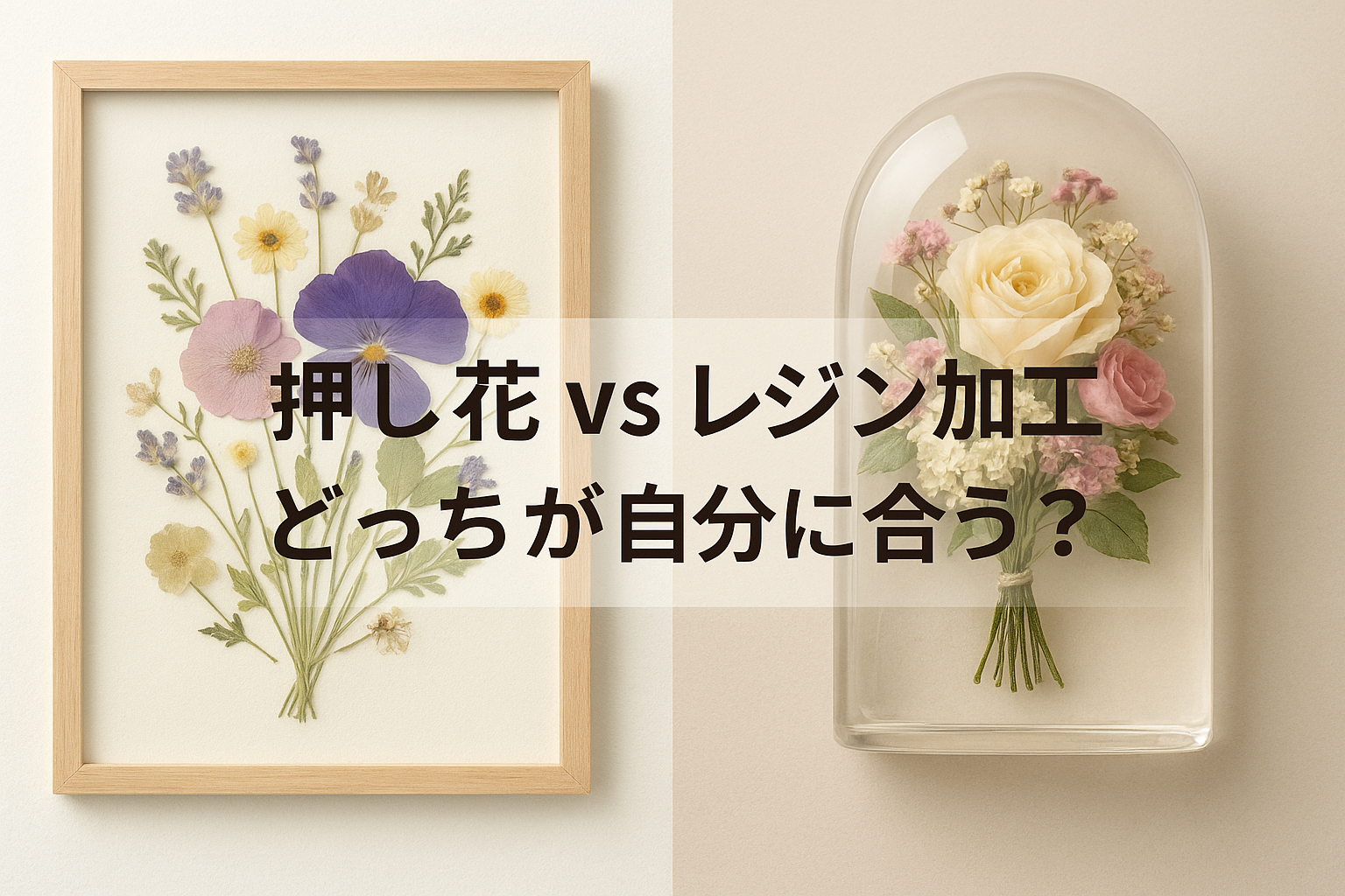 プロポーズの花束や結婚式のブーケ、大切な人から贈られた花…。せっかくなら、思い出と一緒に長く残したいですよね。花束保存の方法にはさまざまな種類がありますが、特に人気なのが 「押し花加工」 と 「レジン加工」 です。
