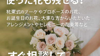 〜プロポーズや結婚式のブーケを“ただの記憶”で終わらせないために〜結婚式や前撮りで手にしたブーケは、その日の感動や想いがぎゅっと詰まった特別な宝物。「写真だけで終わらせたくない」「両親や将来の子どもに...