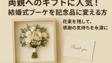 ウエディングブーケ 両親へのギフトに人気!結婚式ブーケを記念品に変える方法 ― 花束を残して、感謝の気持ちを永遠に ―結婚式で両親に贈る「花束」。お世話になった感謝を伝える、感動のクライマックスシーンですよね。でも、その花束…実は「そのまま枯らしてしまう」のはもったいないんで... 2025.10.20 ウエディングブーケ